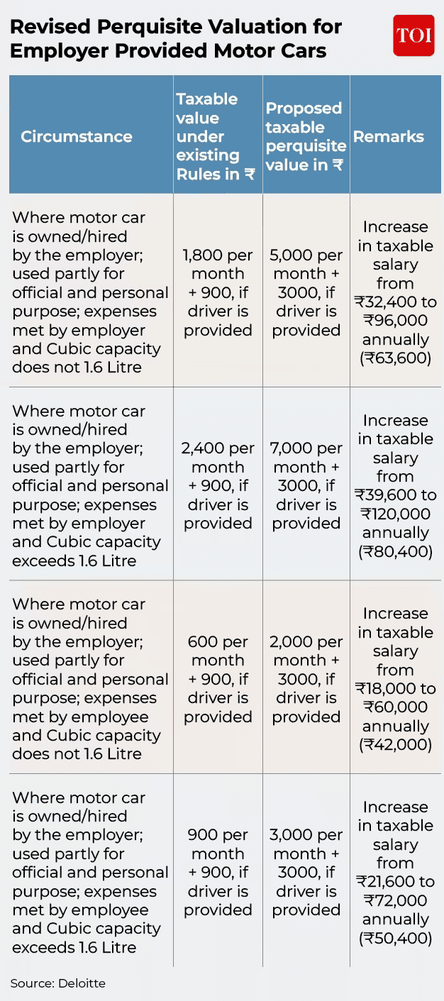 According to Kuldip Kumar, the increase in the valuation of employer-provided cars used for both official and personal purposes—where running and maintenance costs are borne by the employer—will adversely affect impacted employees (generally mid-level and above who get this benefit).