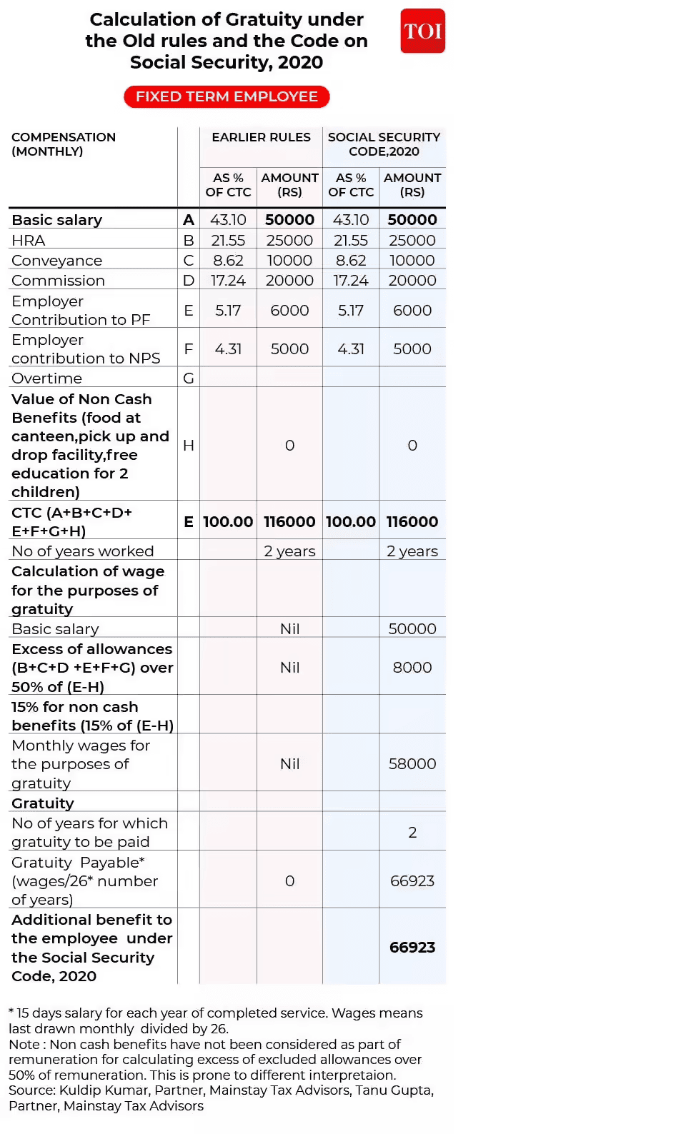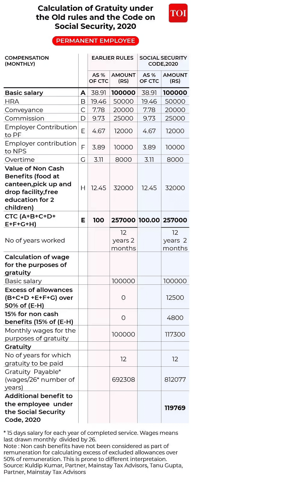 • Under the old rules, the salary for gratuity purposes was Rs 100,000. Accordingly, the gratuity payable came to Rs 692,308